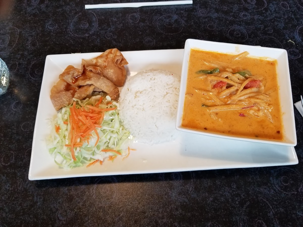 We had a delicious dinner here the other day. We ordered pad Thai, red curry, chow mein, spring rolls, fresh rolls and Thai iced teas Everything was so tasty, hot, and the portions were very generous. Friendly service, can’t wait to go back!